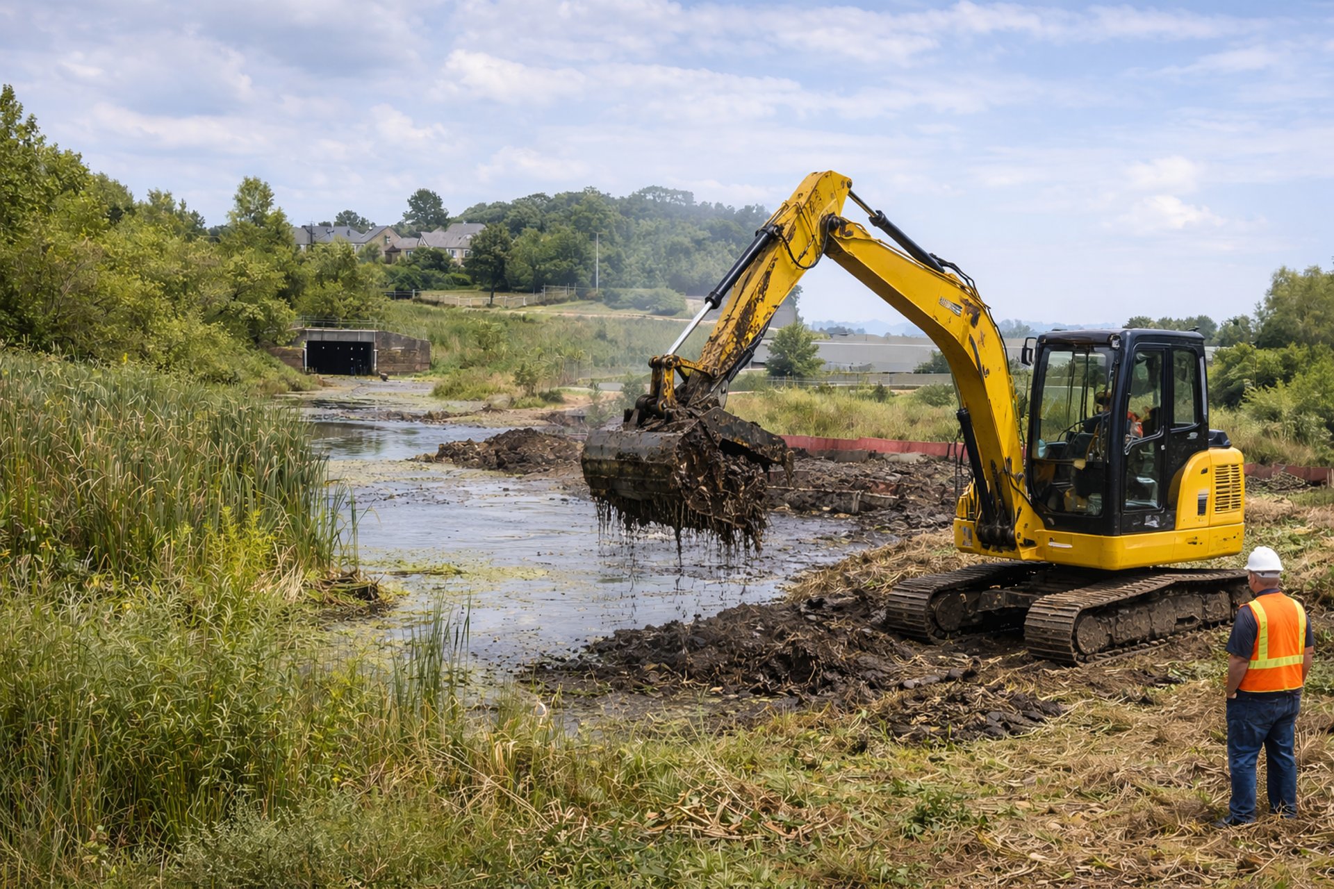 Restoring pond function, access, and capacity to protect infrastructure and reduce liability.Developers and Property Owners